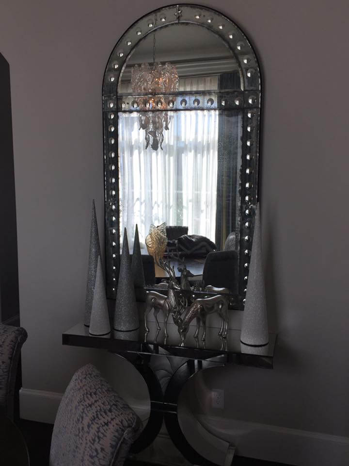 Contemporary style dining room with mercury glass trees